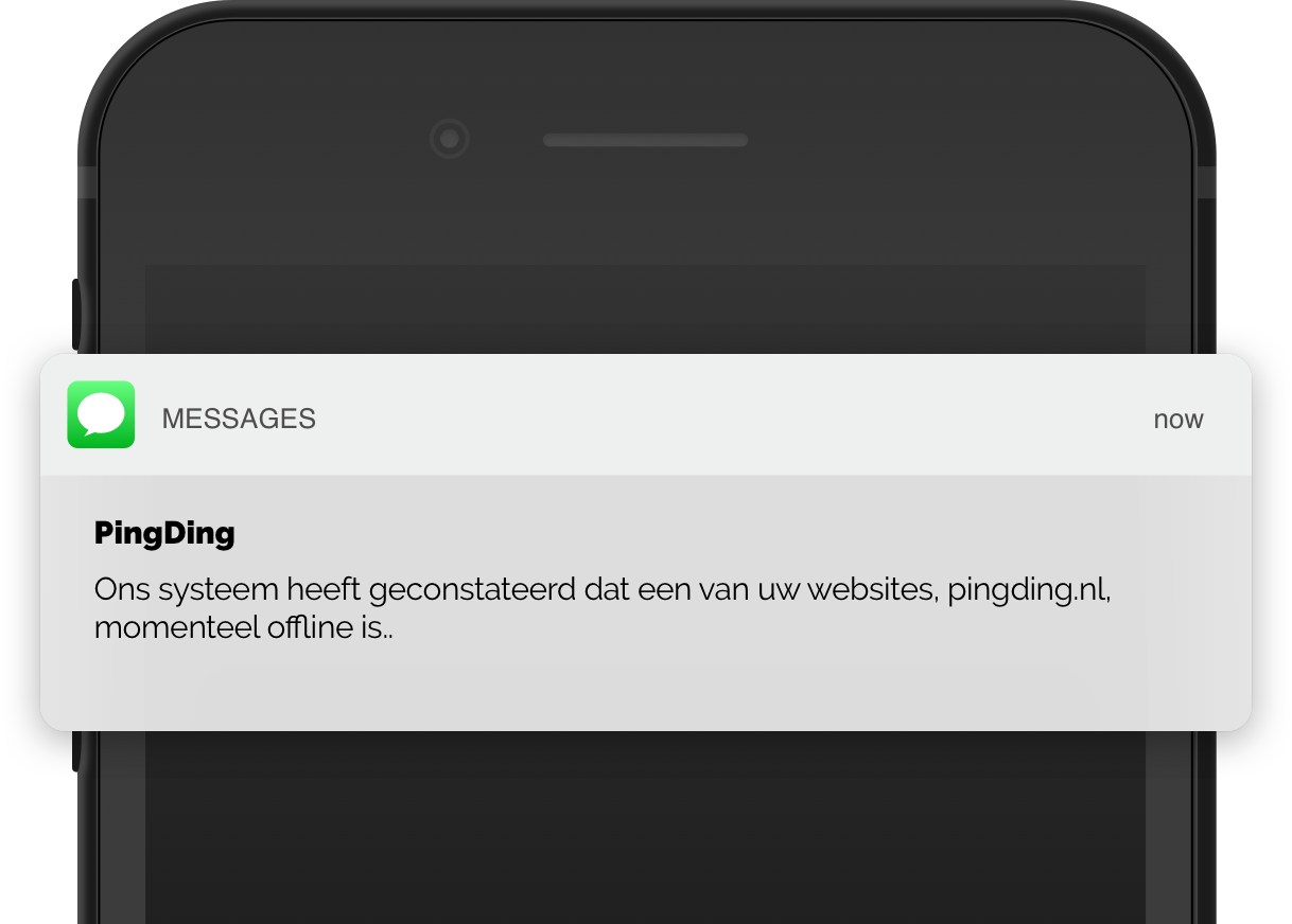 Wil je altijd weten of je website of server bereikbaar is? PingDing monitoort het! 24x7x365. Als je webapplicatie offline is dan ontvang je een SMS of een e-mail. Je bent direct op de hoogte van de status van je wesbite of server en je kan meteen actie ondernemen. Tevens krijg je bericht als je SSL certificaat bijna afloopt, zo voorkom je een onveilige website!